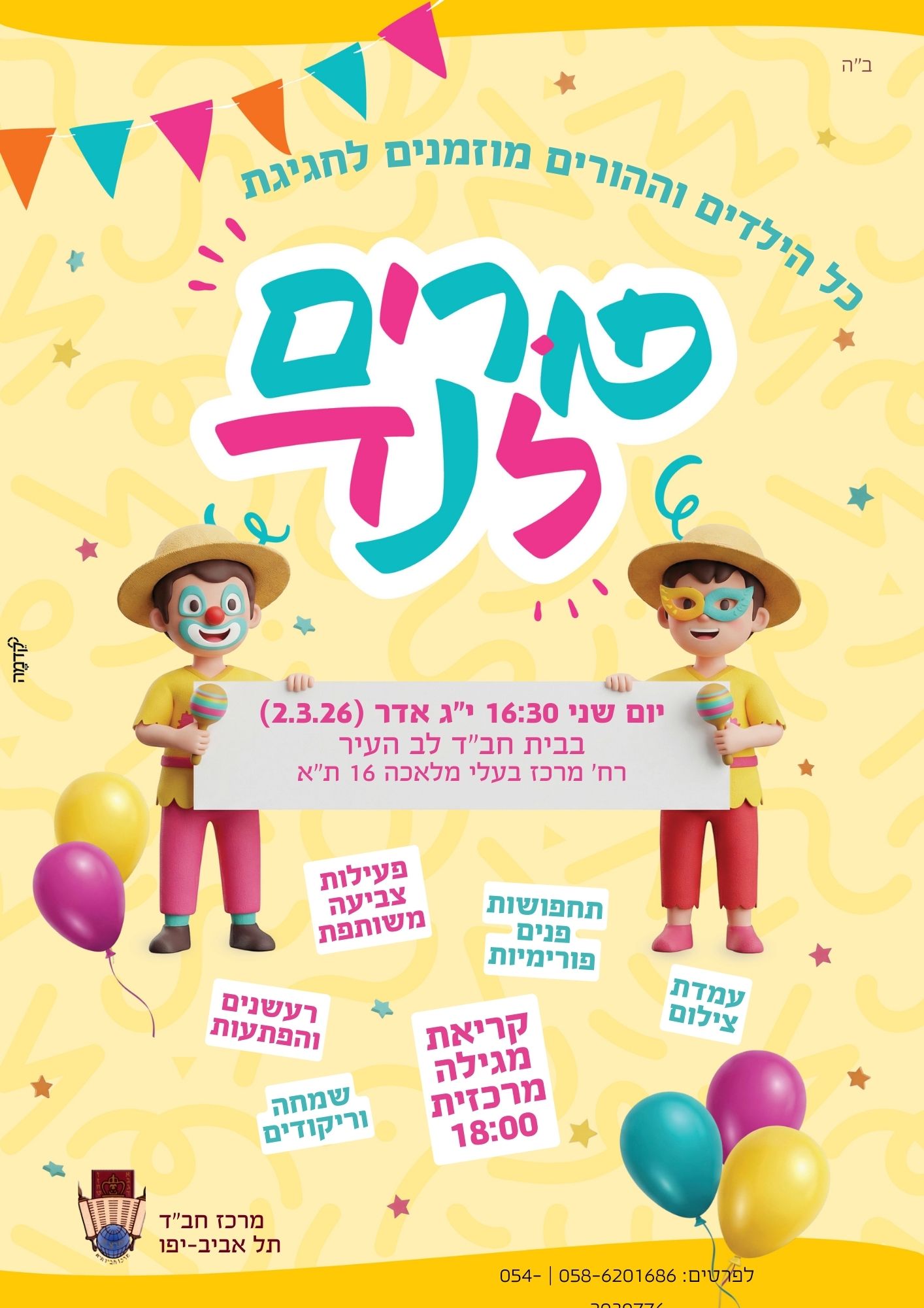 קריאת המגילה המרכזית בלב תל אביב • פורים תשפ"ו (2026)