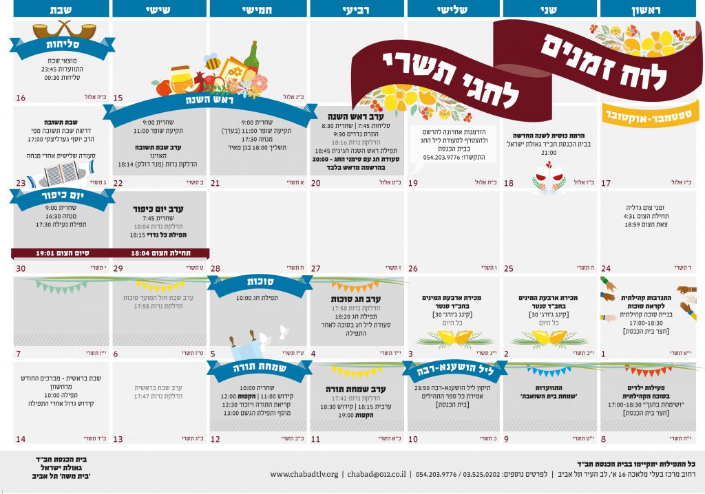 לוח זמנים לתשרי במרכז חב”ד ת”א
