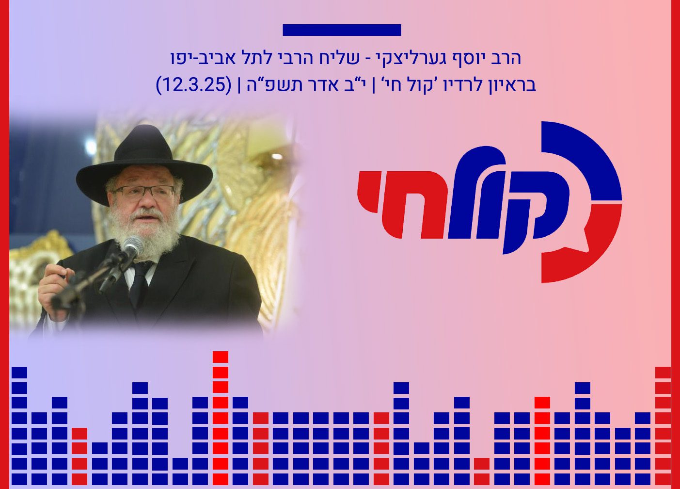 השיעור השבועי במרכז תל אביב עם הרב יוסף גערליצקי הערב (יום שני) | בשעה 20:30 בבית הכנסת חב”ד גאולת ישראל רח’ מרכז בעלי מלאכה 16א’