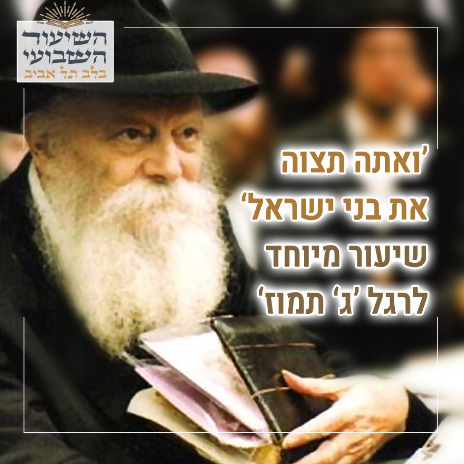 ‘ואתה תצוה את בני ישראל’ שיעור מיוחד לרגל ‘ג’ תמוז’ • הערב בשיעור השבועי
